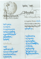 quote [ Wikipedia is not perfect (lack of diversity, moderation…) and it remains a fragile system. Still, I wanted to picture it as a post-human vestige, an artifact invaded by biomorphic figures and spreading typography. My work quickly focused on how to create organic ornaments, affecting the encyclopedia’s interface, its typography, the figures and the Wikipedia logo itself. ]